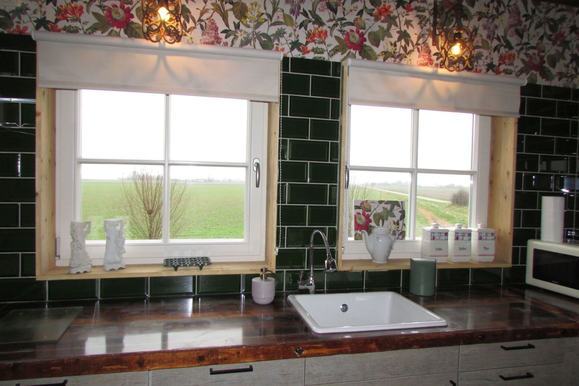 Naast de kookplaat bevindt zich de vaatwasser. De spoelbak is voorzien van een (sproei-)mengkraan.